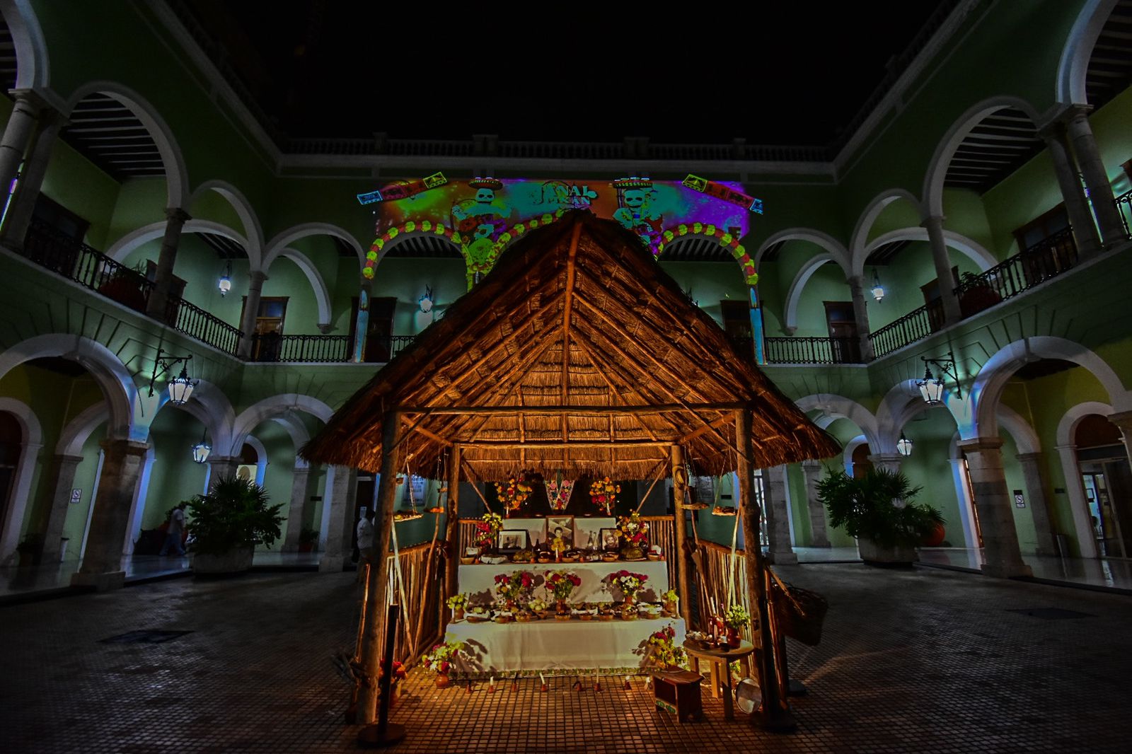 Esta intervención digital fue realizada por personal del Gran Museo del Mundo Maya de Mérida (GMMMM) y plasma elementos característicos de un altar de la región, al tiempo de compartir imágenes de la obra de cartonería "Pareja de mestizos yucatecos", del artesano Mauricio Hernández Colmenero, originario de Guanajuato y cuyas piezas forman parte del Museo de Arte Popular de Yucatán (Mapy). El video Mapping iniciará a las 6:00 de la tarde y la última proyección tendrá lugar a las 10:00 de la noche.
