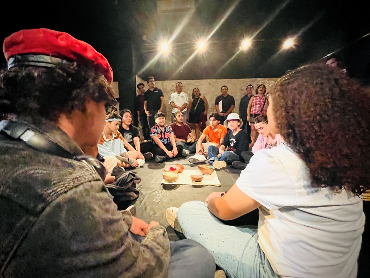Mérida, Yucatán, 11 de octubre de 2024.- La valentía de la infancia y la urgencia de compartir valores humanos, son la motivación de Lola, Ixchel y Pedro, quienes notan que suceden grandes cambios y deciden alzar la voz con la ayuda de Tsukán, la serpiente alada protectora. Lo anterior fue el argumento central de la pieza teatral Paraíso, que anoche se presentó como parte del Otoño Cultural 2024, en la sede de Tapanco Centro Cultural.