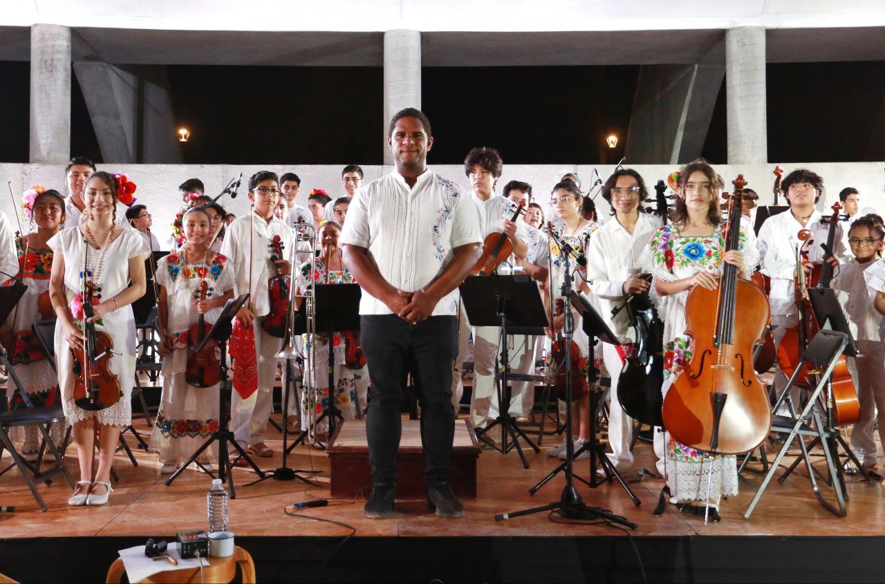 Las y los 58 integrantes de la agrupación, procedentes de distintas partes de la ciudad de Mérida, bajo la dirección de Alexis Arango Fernández dieron muestra de sus capacidades y de lo aprendido en sus clases cuando interpretaron las piezas “El rito”, la “Guacamaya” y “La ley poderosa” que repitieron al final de la presentación a solicitud del público que reconoció el talento de las y los infantes y adolescentes.