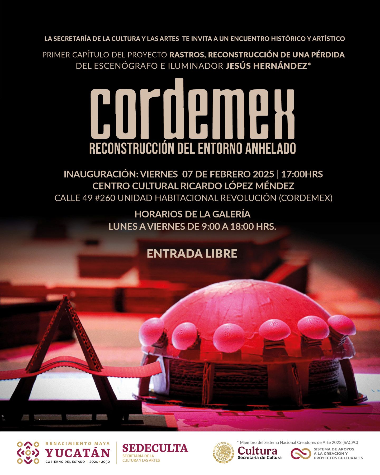 Paralelamente y como parte de ese ejercicio reflexivo se inaugurará la exposición Cordemex: Reconstrucción del Entorno Anhelado, en la que se rinde tributo a la zona a través de una maqueta que muestra los centros de servicios y equipamiento urbano del proyecto habitacional diseñado por el arquitecto Félix Mier y Terán.