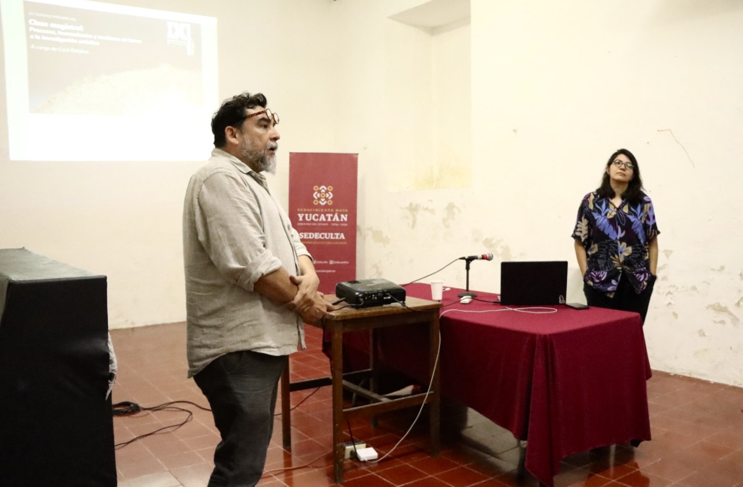 Previo al inicio de la clase magistral, la titular de la Sedeculta, Patricia Martín Briceño agradeció la coordinación con el Centro de la Imagen de la Ciudad de México y la iniciativa Proyecto Y para hacer posible este encuentro entre Cecil Bolaños y quienes asistieron al Centro Cultural del Mayab.