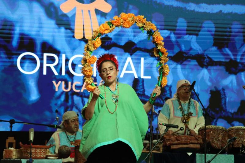 Mérida,Yucatán, a 18 de octubre de 2025.- Voces, colores y tradiciones se entrelazaron en la segunda jornada de Original Yucatán: Encuentro de Arte Textil Mexicano, donde la música de Las Mujeres Cardencheras y del grupo Tribu, y una pasarela dedicada al viento enmarcaron un día de intensa actividad cultural en el Gran Museo del Mundo Maya y el Centro de Convenciones Yucatán Siglo XXI.