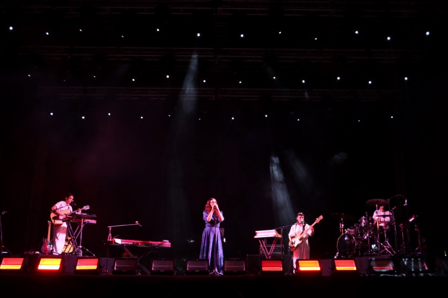 Laboratoria, una agrupación formada por artistas yucatecas con distintas influencias musicales, fue la encargada de abrir la noche de concierto, compartiendo su talento y prendiendo el ambiente con un público que respondió con aplausos reconociendo el talento local.