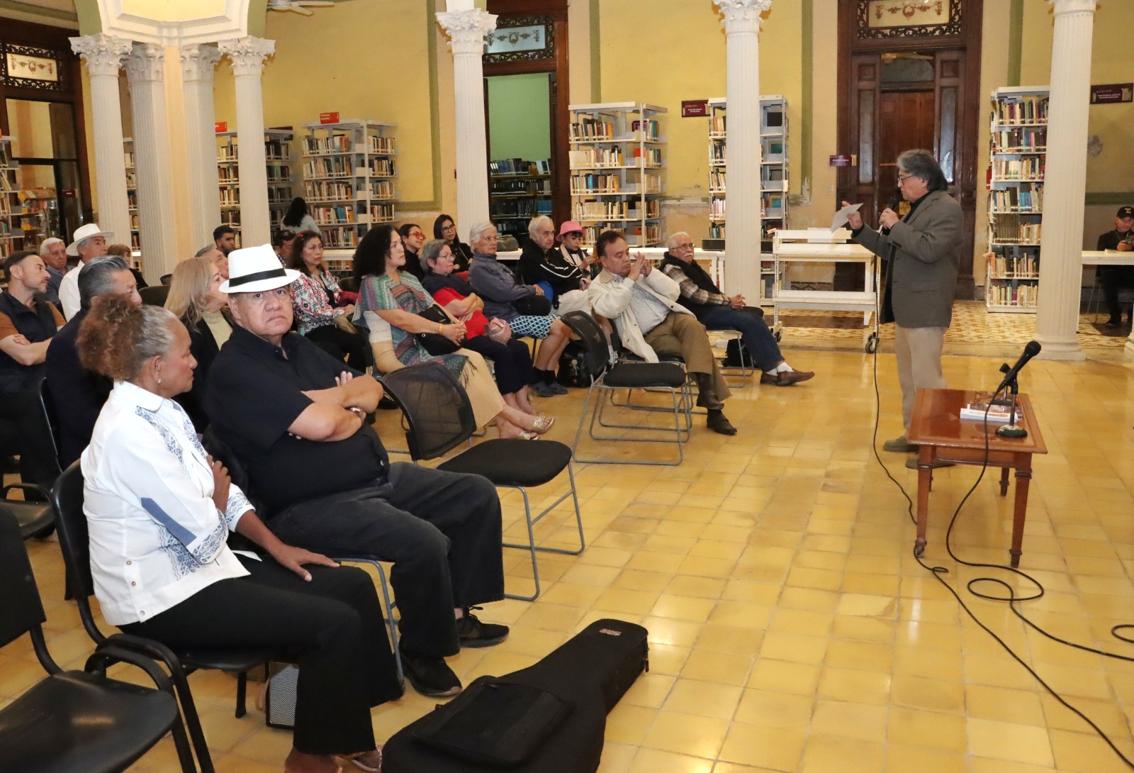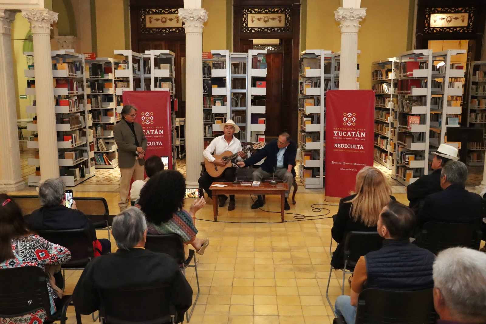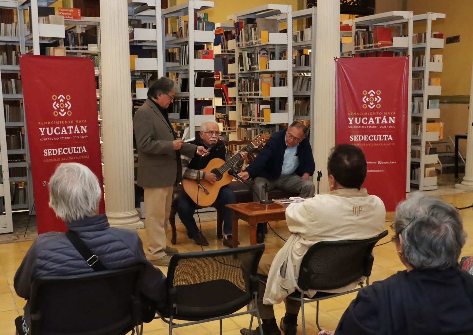 Mérida, a 7 de febrero 2026.- La Biblioteca Pública Central Estatal “Manuel Cepeda Peraza” se llenó anoche de canoras y flores de nectarios perfumados con la charla La trova yucateca, “Peregrina”, leyenda y canción, a cargo del profesor Ariosto Aké Zaldívar, organizada por la Secretaría de la Cultura y las Artes de Yucatán (Sedeculta).