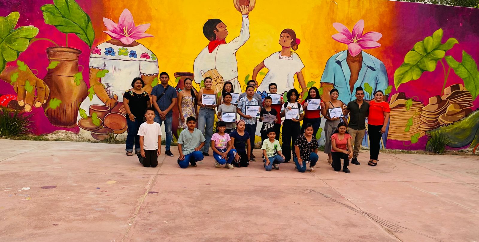 De esta forma, en Oxkutzcab, Samahil, Ticul, Tixpéhual, Umán, Xocchel, Tizimín y el municipio mencionado, 67 menores yucatecos de 6 a 17 años de edad, a través del juego y otras estrategias lúdicas, tuvieron la oportunidad de intervenir espacios públicos, con la experimentación de materias, la reflexión crítica sobre la identidad, tradiciones y entorno.