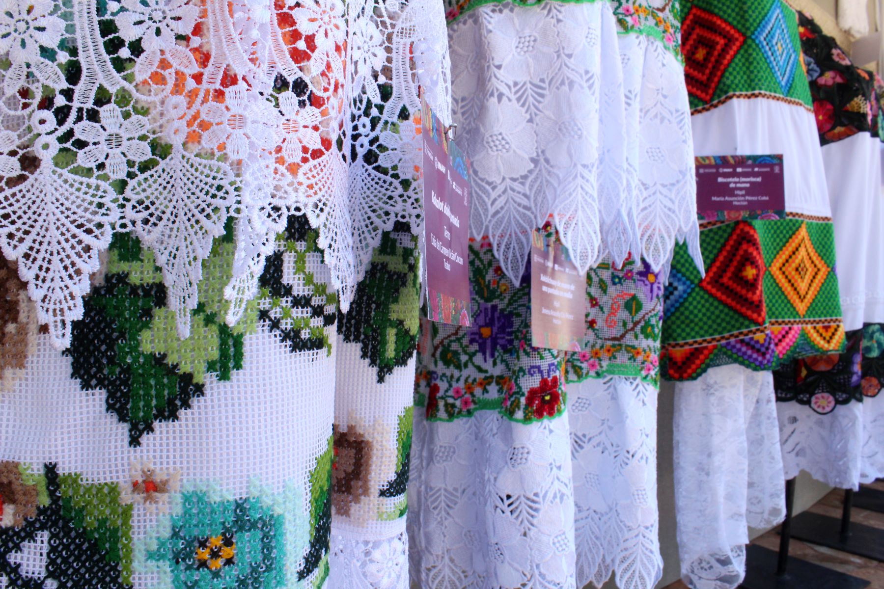 Asimismo, explicó que el antecedente del bordado en Yucatán tiene su base en evidencia encontrada en el cenote sagrado de Chichen Itzá, y que se encuentra en resguardo en el Museo Regional de Antropología Palacio Cantón, con fragmentos de tejido de telar y brocado, que es el tipo de adorno que se le pone al telar al irlo tejiendo.
