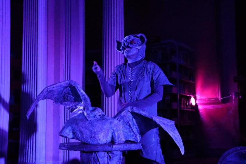 Con esta presentación, la compañía teatral, en colaboración con la Sedeculta, retomó el reciente fin de semana un sitio cotidiano de consulta, estudio y entretenimiento para concebirlo también como un lugar vivo donde el conocimiento se transformó y dialogó con las artes escénicas.