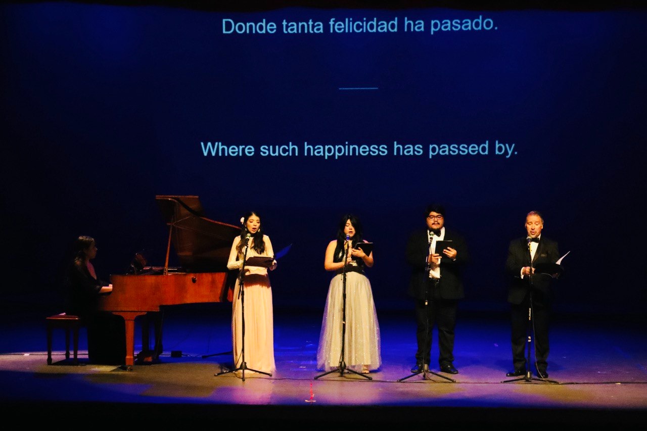 En el recital tomaron parte integrantes del Estudio de Ópera de Mérida, dirigido por Andrea Gutiérrez, además de las actrices Valeria Picón y Abril Gamboa, los pianistas Jorge piña y Adriana Peraza y la guitarrista Andrea Carrillo.