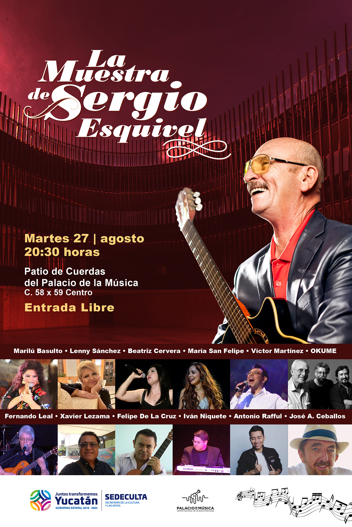 Denominada La muestra de Sergio Esquivel, la velada reunirá a Marilú Basulto, Lenny Sánchez, Beatriz Cevera, María San Felipe, Víctor Martínez, Fernando Leal, Xavier Lezama, Felipe de la Cruz, Iván Niquete, Antonio Rafful, José A. Ceballos y el grupo Okume quienes interpretarán temas del cantautor yucateco homenajeado, que también participará para complacer a la audiencia.